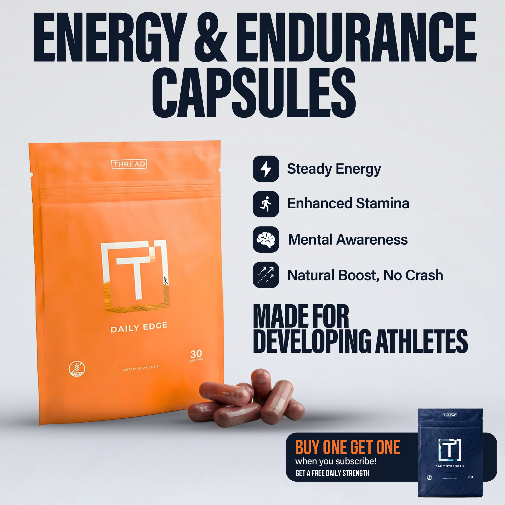 Daily Edge capsules unlock your competitive advantage. Designed to elevate your game, these capsules are infused with essential minerals and natural ingredients to help you push your limits as a young athlete.