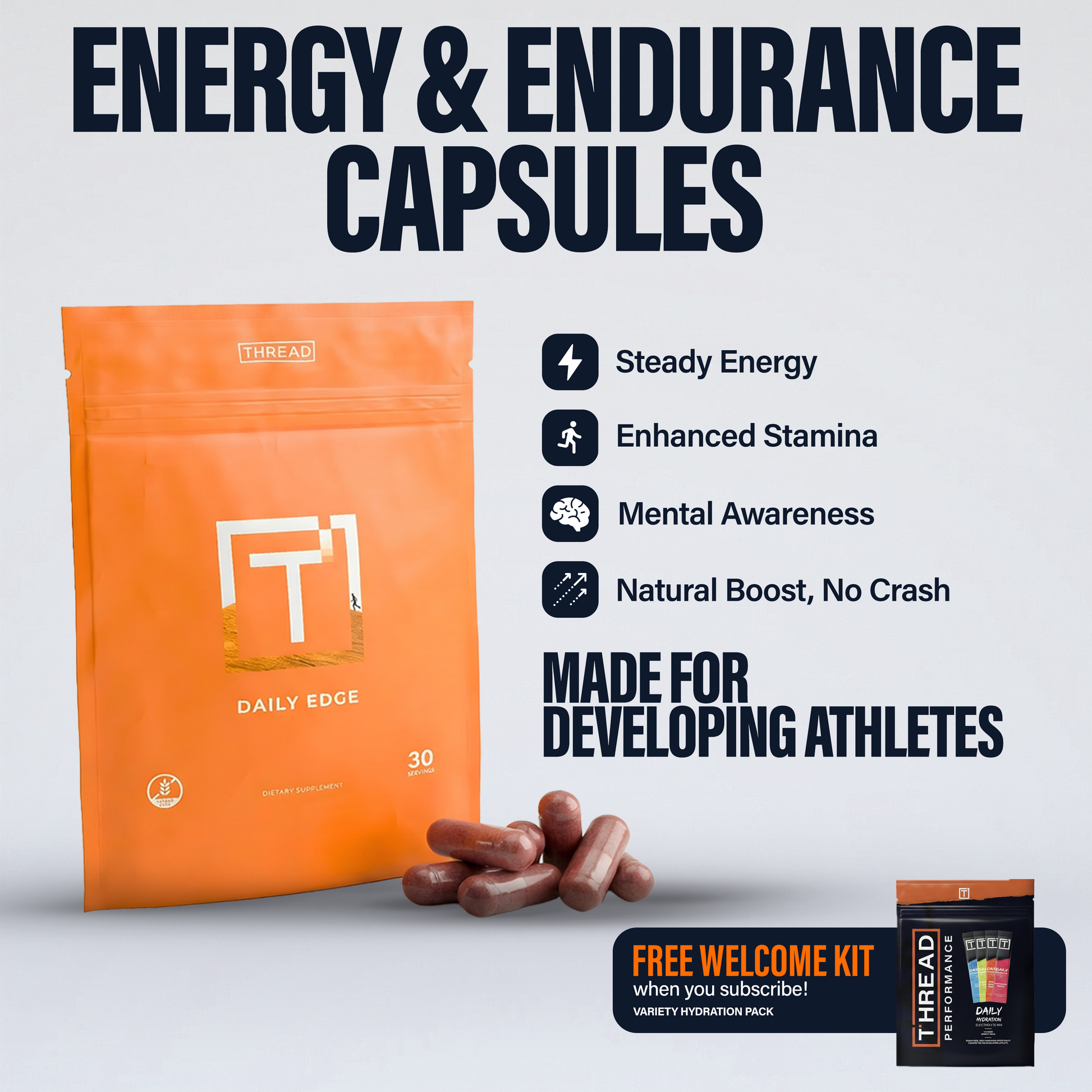 Daily Edge capsules unlock your competitive advantage. Designed to elevate your game, these capsules are infused with essential minerals and natural ingredients to help you push your limits as a young athlete.