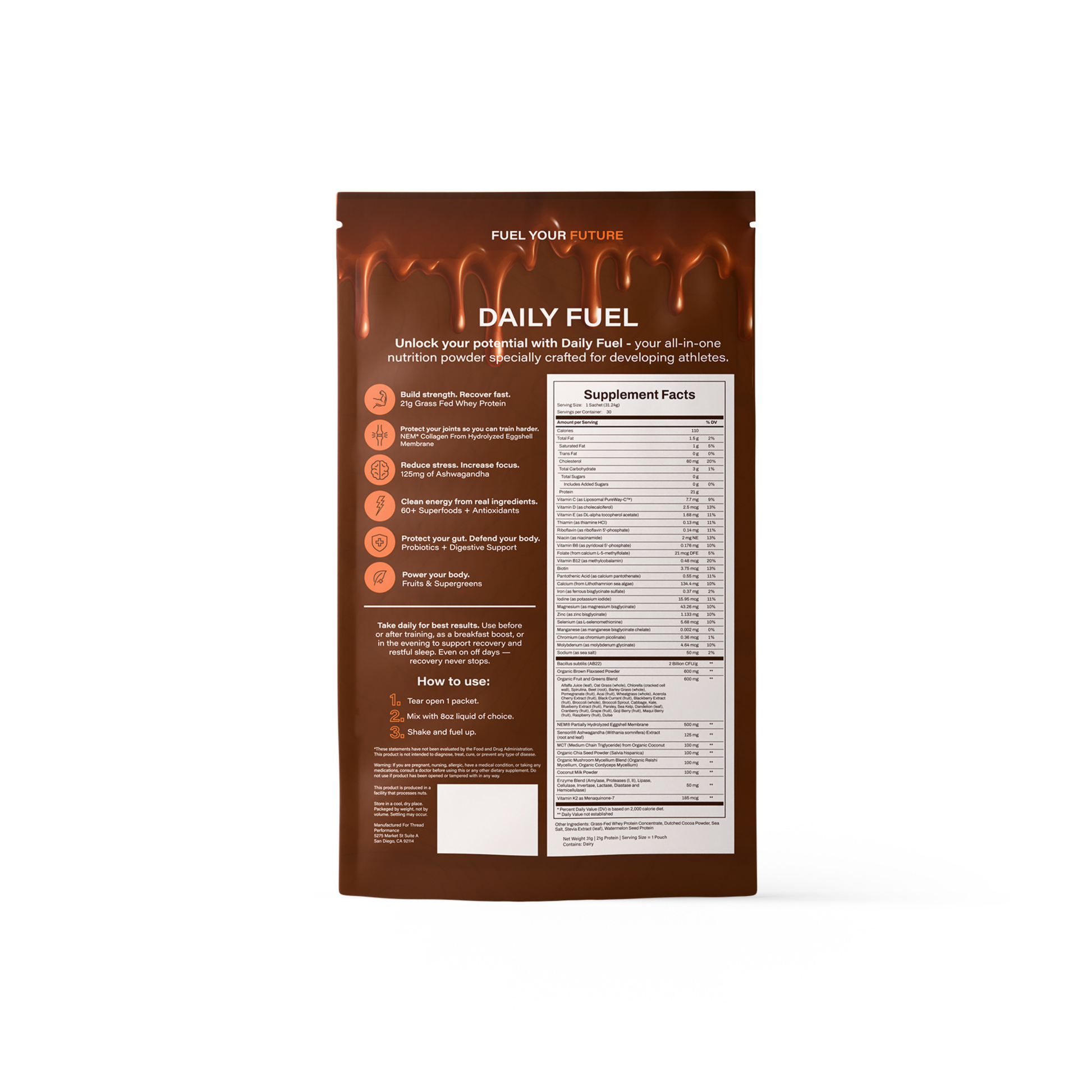 Push your limits and recovery faster. Daily Fuel's blend offers the optimal nutrition to help developing athletes repair and rebuild your muscles, helping you bounce back faster and ready to take on the next challenge.