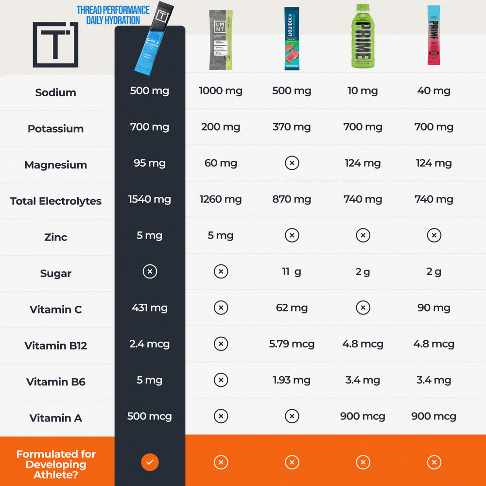 Balanced sodium + potassium ratio for rapid absorption and lasting hydration.